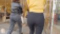 エスカレーターでも止まることなく登ってエロいヒップラインを堪能させてくれる。
