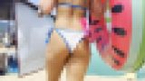 大好評だったデニムショーツの金髪美女。すらっとした長い生足に、お尻が見えるほど短いデニム。夜の繁華街を歩く後ろ姿を収録。
